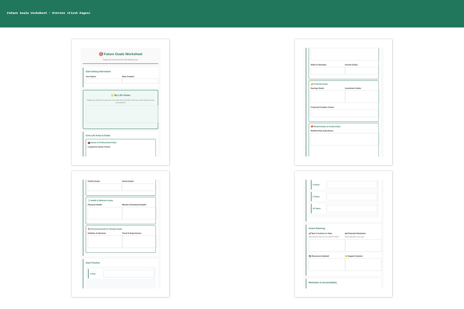 Future Goals Worksheet multi-page preview